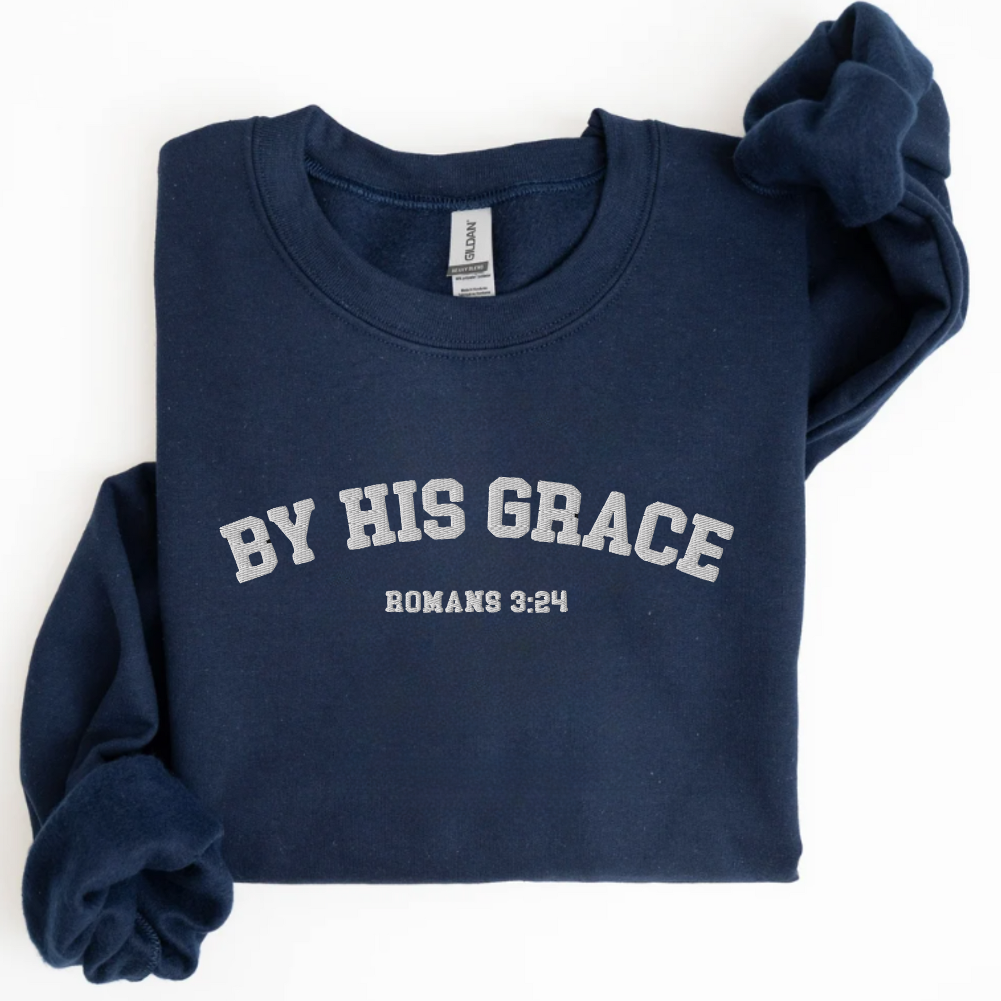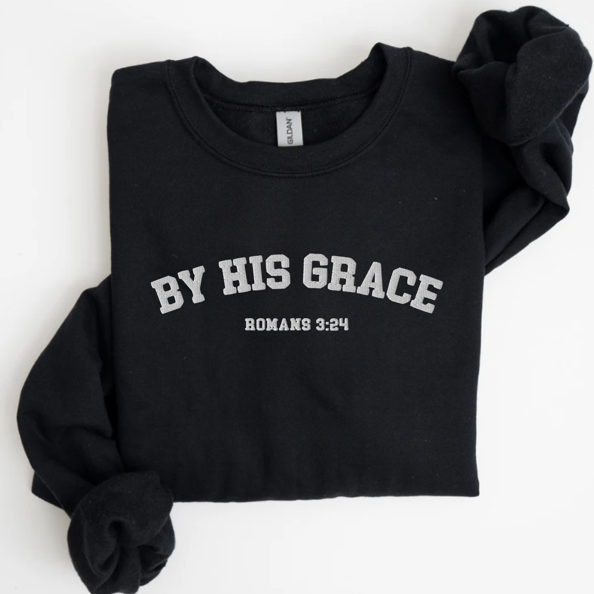 By His Grace Romans 3:24 Embroidered Sweatshirt